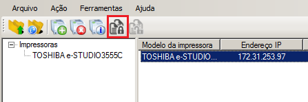 Para ativar a funcionalidade de cópia controlada em um equipamento já adicionado no NDD Print MF Toshiba, selecione o equipamento desejado e clique em Habilitar cópia controlada.
