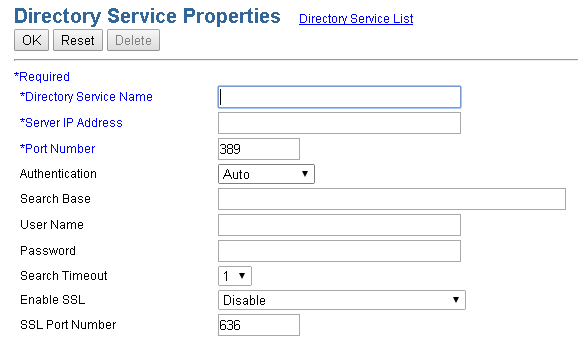 Para configurar a autenticação da impressora em um domínio, acessa-se o menu Administration > Maintenance > Directory Service, clica-se em New, onde preenche-se os dados referentes ao domínio a ser utilizado, clique em Ok, ao finalizar.