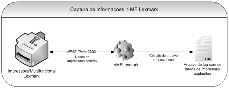 Através do protocolo NPAP Porta 9300, o n-MF Lexmark monitora e captura os pacotes NPAP, pacotes que contém as informações dos trabalhos realizados pelas impressoras.