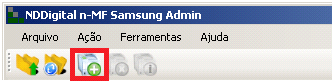 Para que a impressora passe a ser monitorada por Arquivo CSV, a mesma deve ser adicionada na interface de administração do n-MF Samsung. Para isso, basta abrir o NDDigital n-MF Samsung Admin e clicar no ícone de adição de impressora, conforme indica a imagem abaixo: