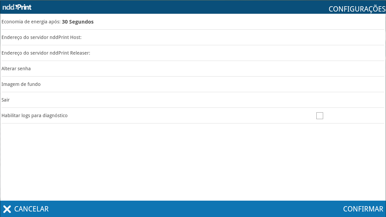 Digite o IP onde encontram-se o módulo nddPrint Host, separado por pontos, como no exemplo: 172.31.40.131.