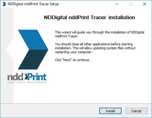 Para instalar o nddPrint Tracer, execute o arquivo de instalação.