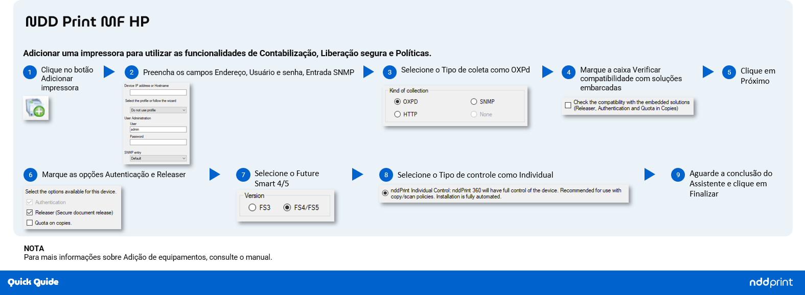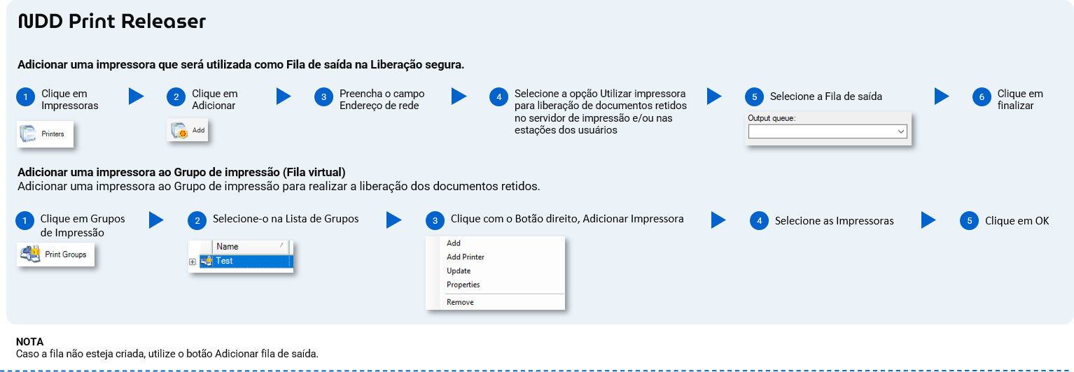 Criamos pra você uma Guia Rápido de instalação e configuração dos módulos NDD Print, com a finalidade de utilizar as funcionalidades de Contabilização, Liberação Segura e Políticas.