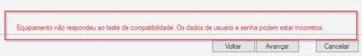 Ao realizar a adição do equipamento no NDD Print MF HP, é apresentada a mensagem “Equipamento não respondeu ao teste de compatibilidade. Os dados de usuário e senha podem estar incorretos“.