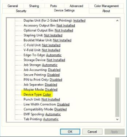 Configurar o tipo de dispositivo nas configurações do driver do Grupo de impressão, conforme abaixo: